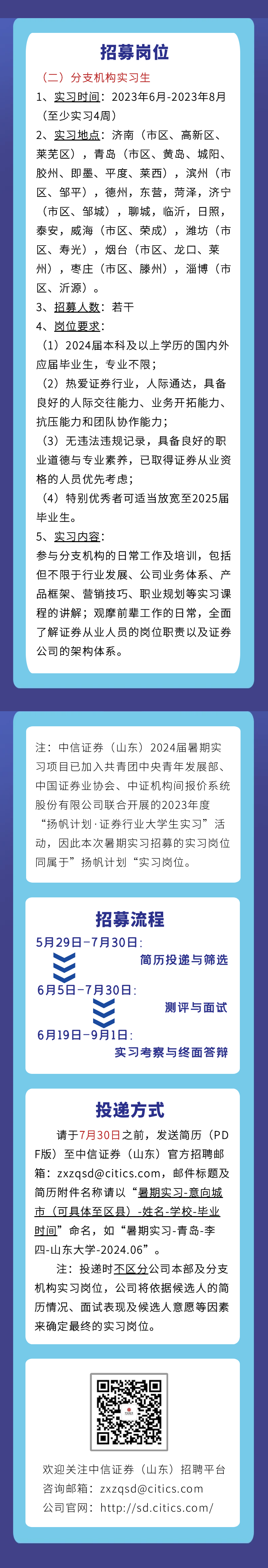 1、发送简历 (PDF版)至邮箱:zxzqsd@citics.com
