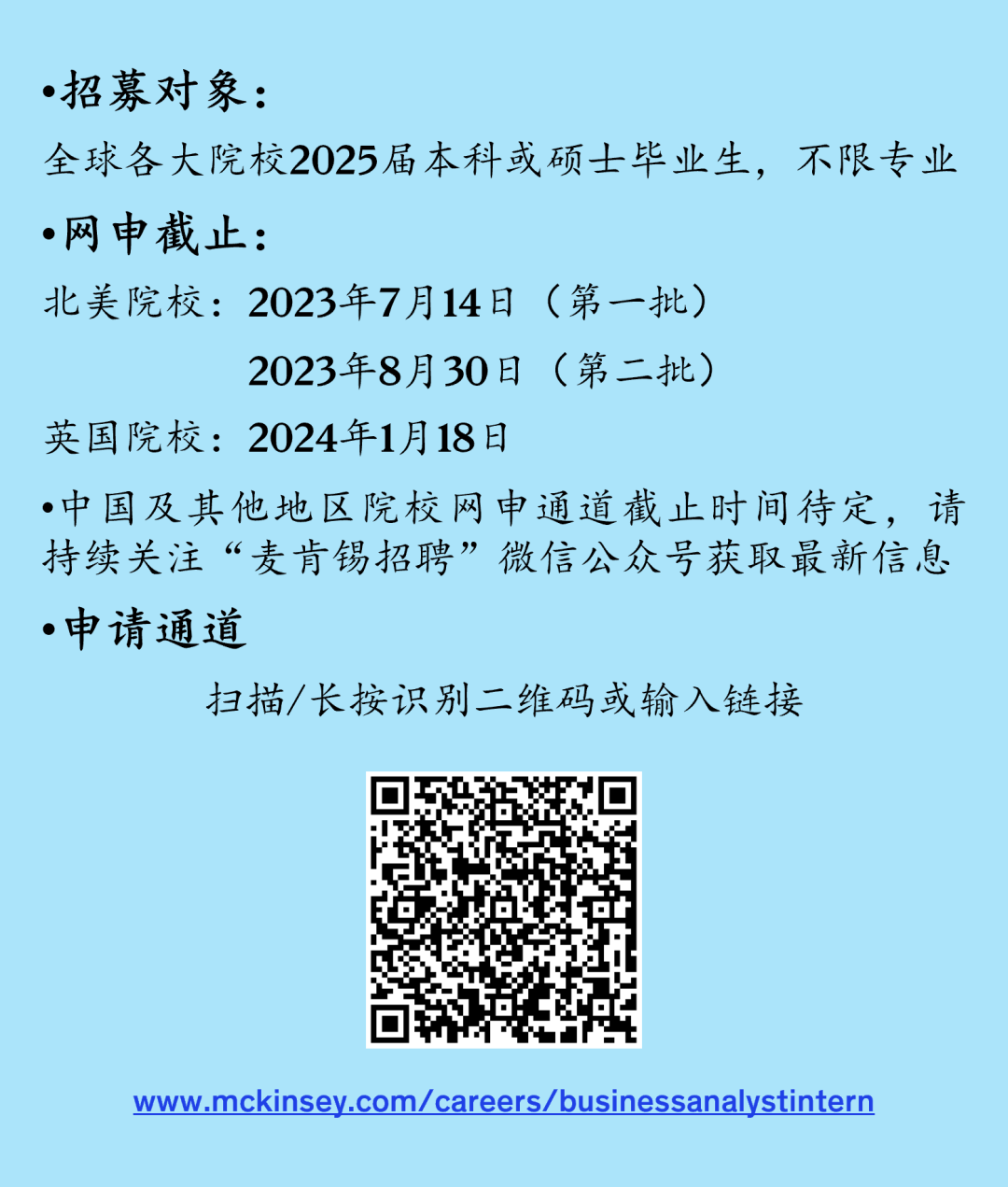 暑期商业分析师 网申链接:https://www.mckinsey.com/careers/search-jobs/jobs/businessanalystintern-15275