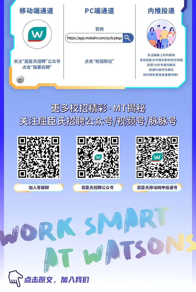 网申链接:https://app.mokahr.com/campus_apply/watsons/4265?sourceToken=5585b4954eef0a9cf9b75f795e208e76#/