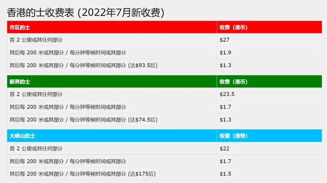 车资信息均来自HK Taxi