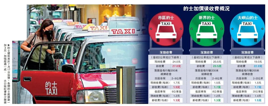 市区的士(红的)落旗将由24元加至27元;