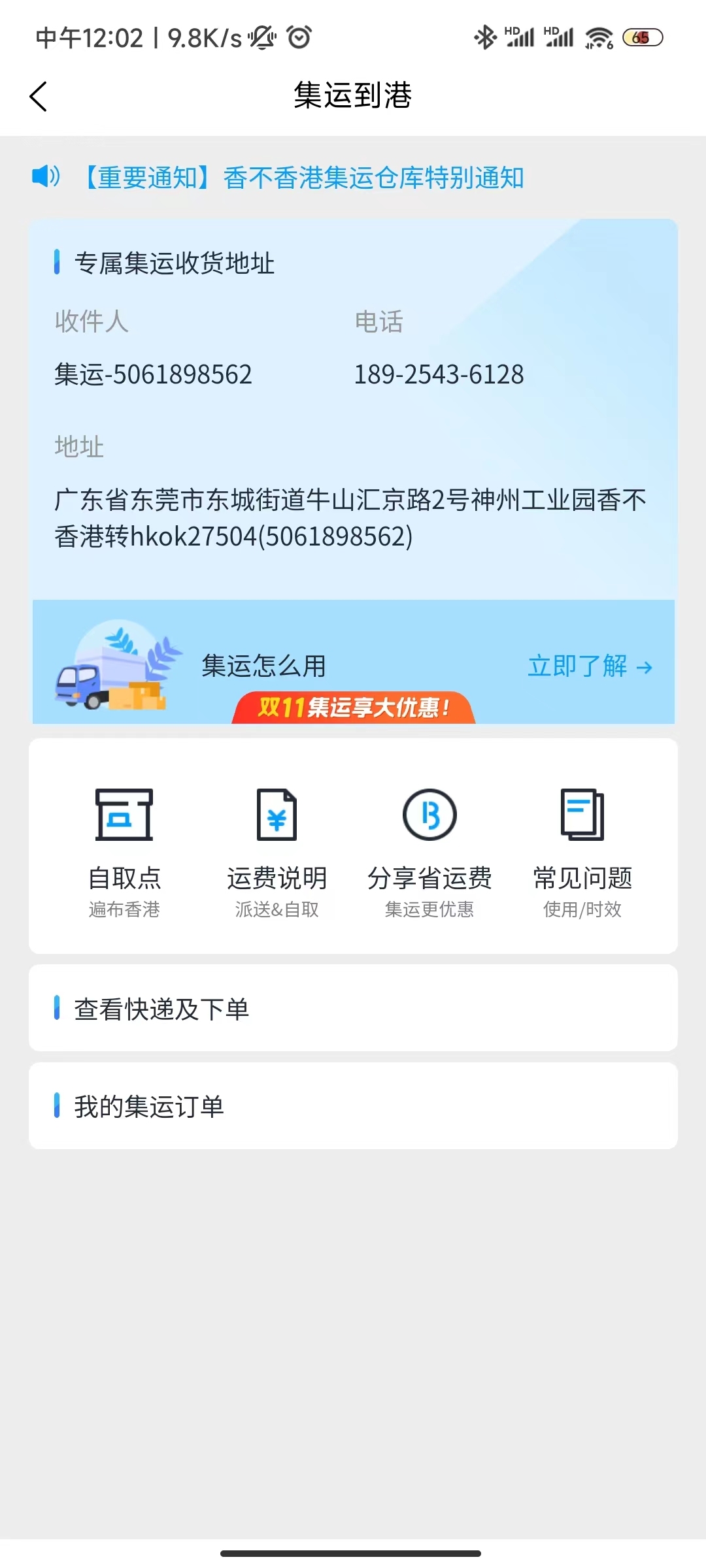 找到集运专属地址