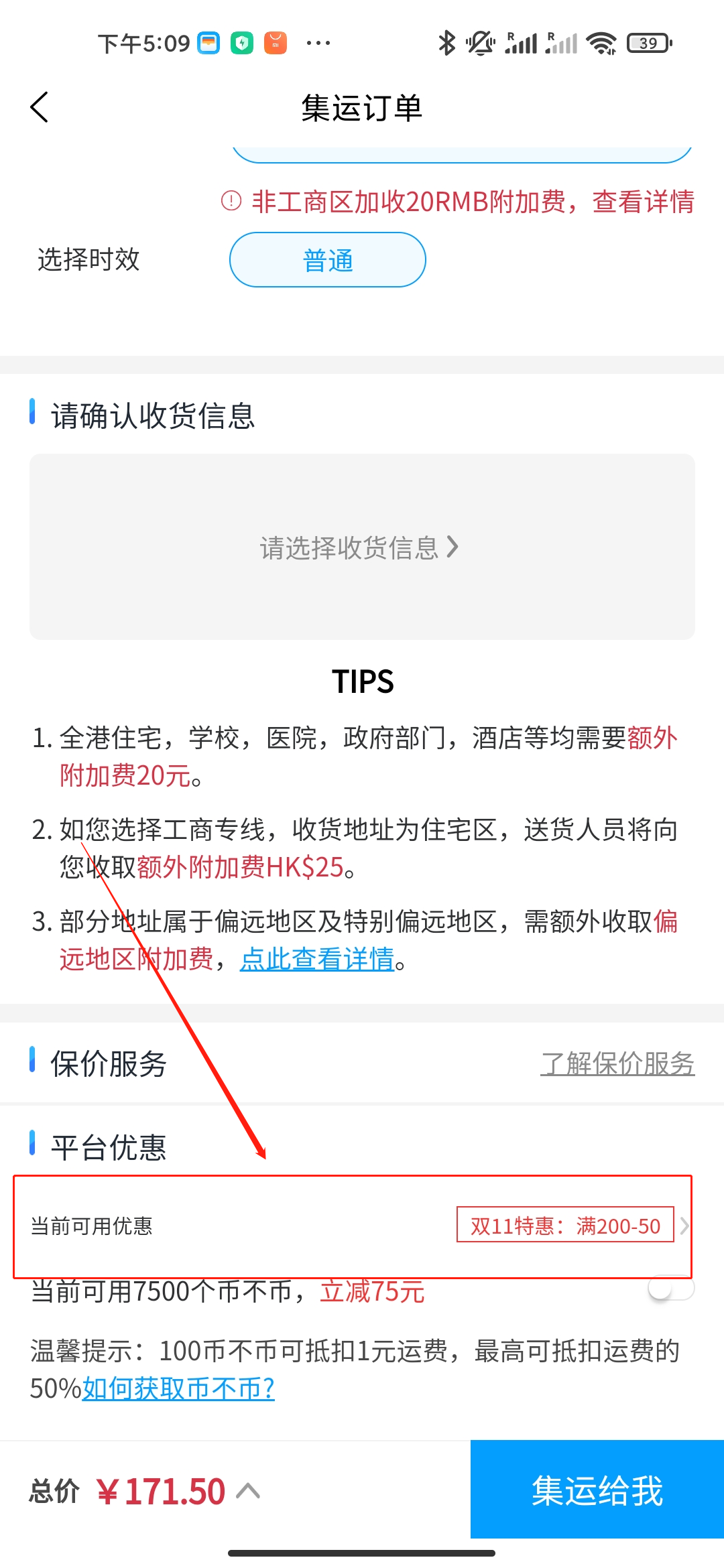 填写集运信息